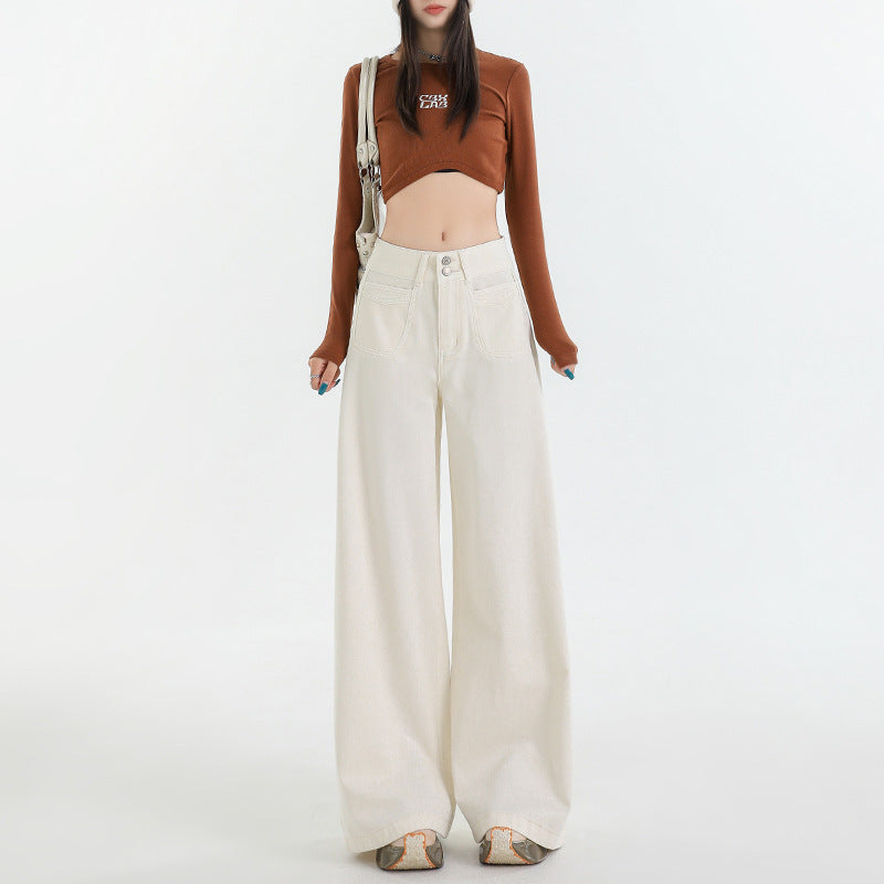 High-Waist White Wide-Leg Pants for Women – Loose Fit Elegant Straight Trousers, Casual Chic Slimming Long Pants