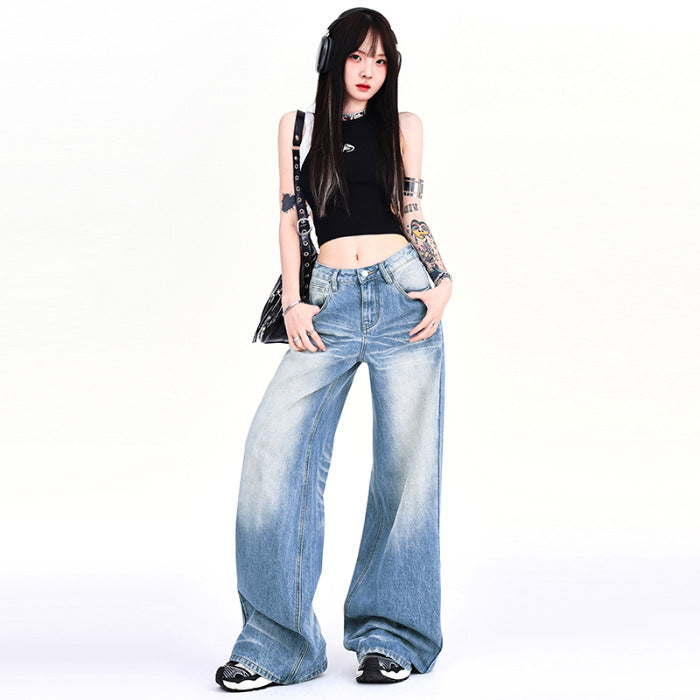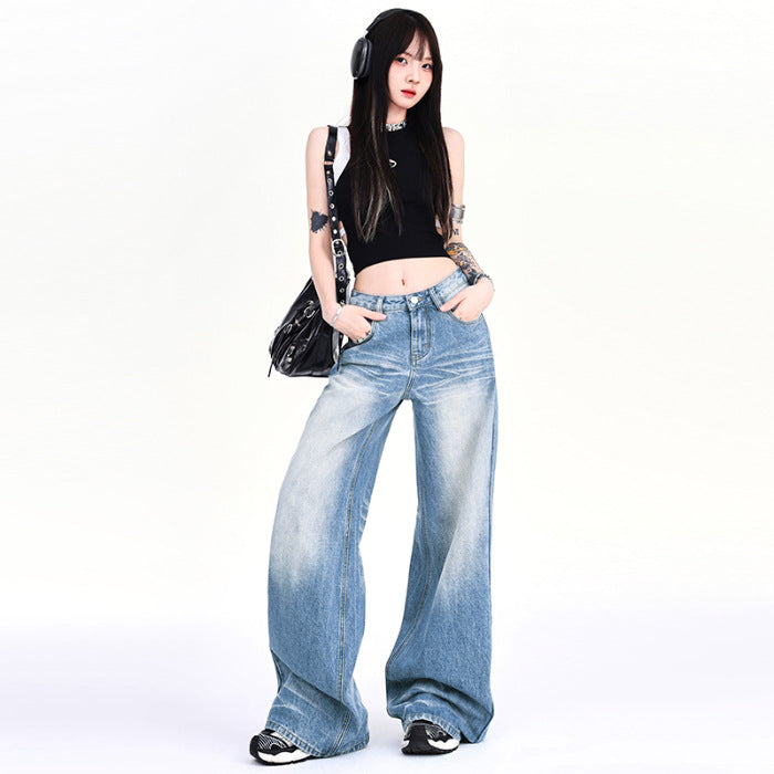 Women’s High-Waist Vintage Wide-Leg Jeans – Light Blue Loose Fit Street Style Trousers