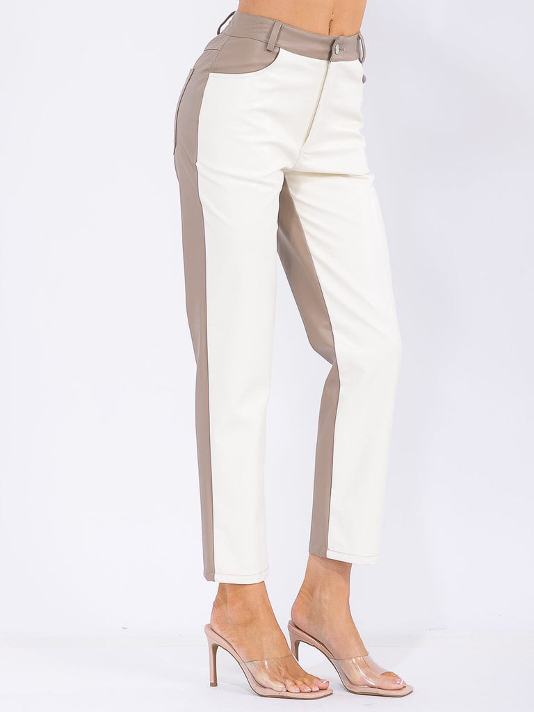 Women’s High-Waist Colorblock Straight Pants – Beige and Khaki Contrast Design Slim Fit Trousers