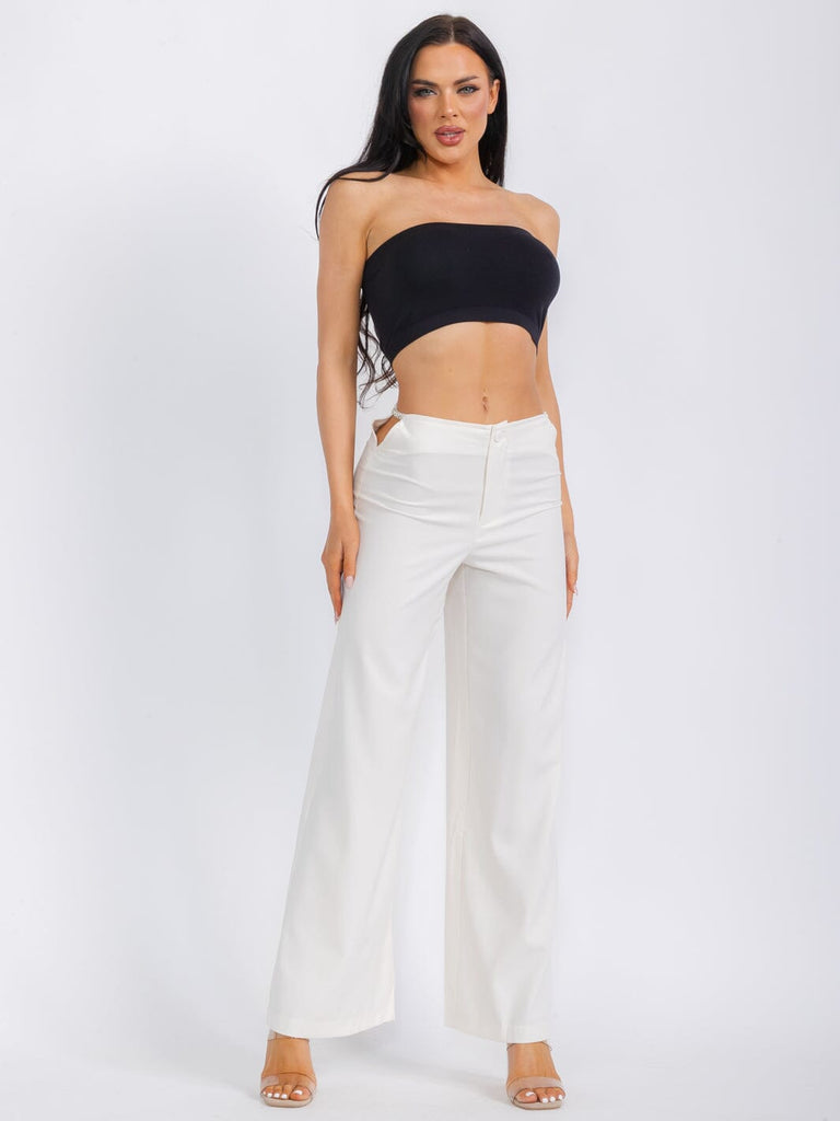 Women’s High-Waist White Wide-Leg Pants – Flowy Dress Pants with Elastic Waist